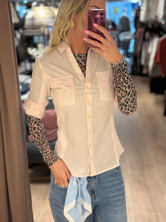 BCANNIE SHIMMER MESH BLOUSE LEOPARD