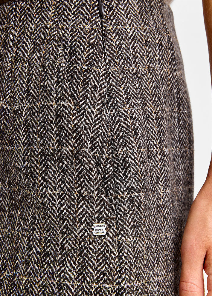 Smuk og elegant kort Olivia nederdel fra Gustav, designet i en lækker sildebensvævet uldkvalitet. Nederdelen har et helt enkelt snit med stiklommer og lynlåslukning i siden.