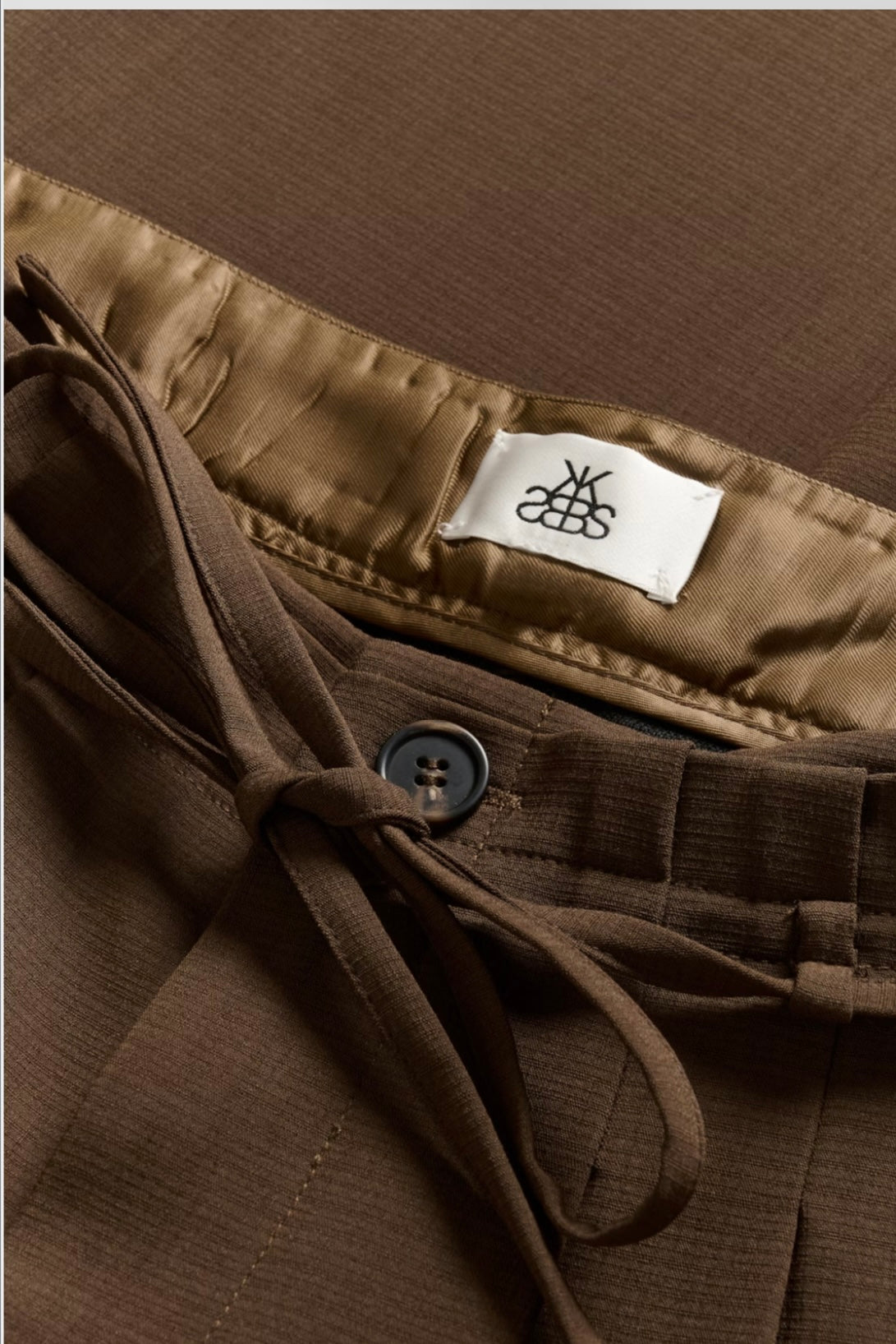 Disse bukser har en afslappet pasform med snøre i taljen og læg foran der giver komfort og stil. det lige ben gør dem alsidige til både arbejde og hverdag.