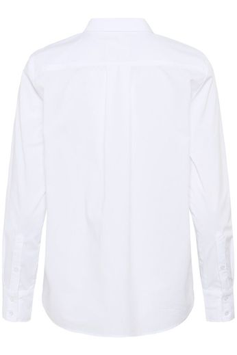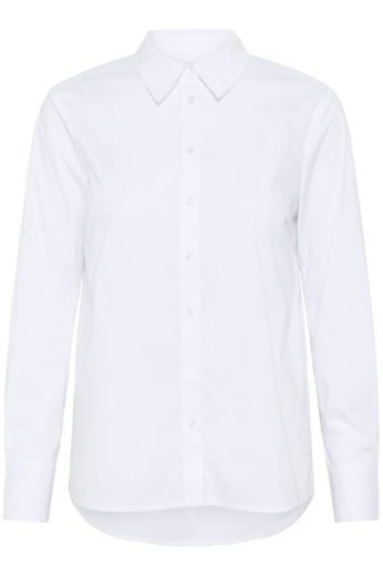 Modellen er 178 cm høj og er iført en størrelse 36. Denne hvide skjorte i bomuldspoplin er et tidløst basisitem med en klassisk krave og lange ærmer. Den rene silhuet og sprøde finish gør den ideel til både arbejdsdage og afslappede looks. Brug den med habitbukser eller afslappede jeans.