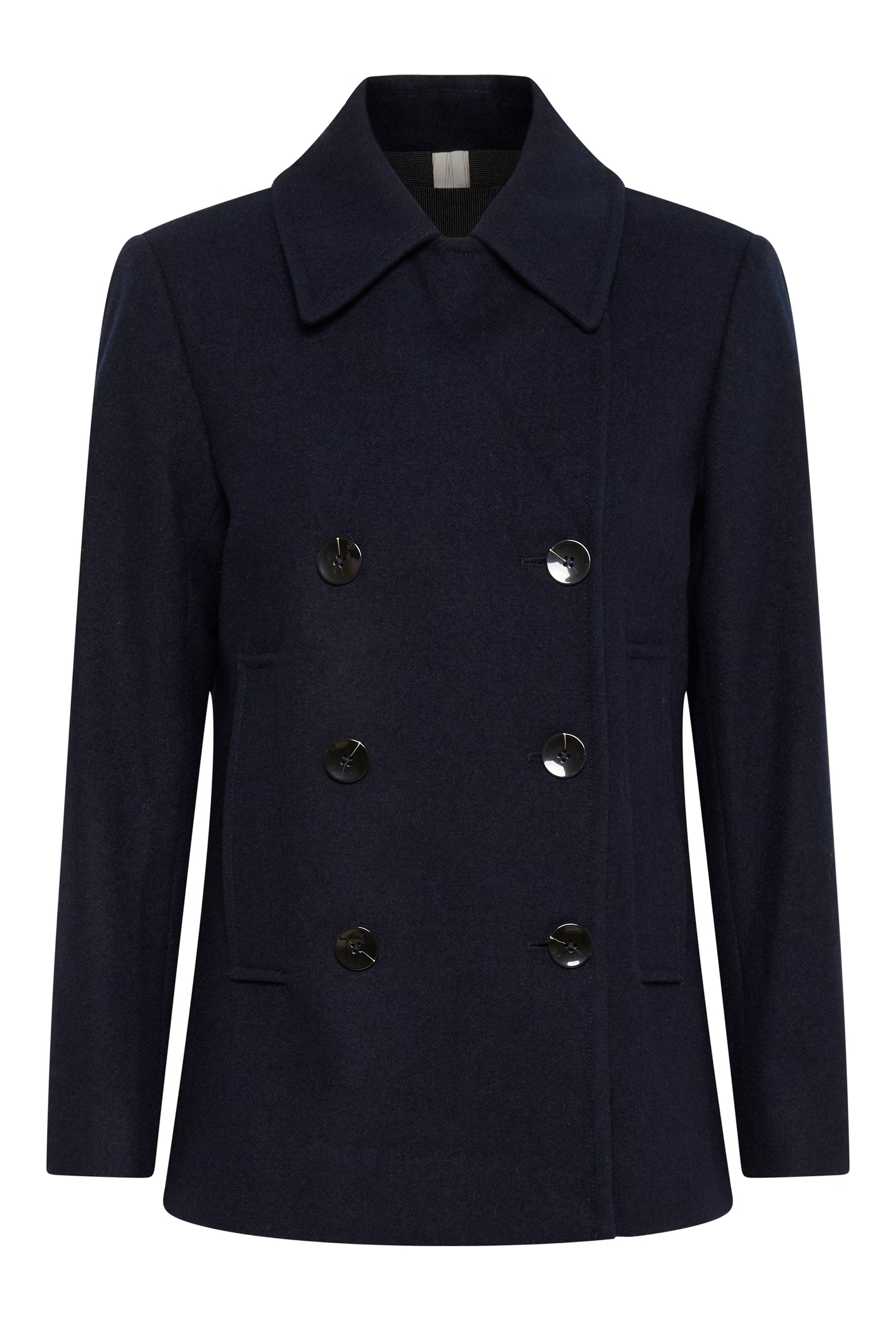 En tidløs pea coat med en struktureret pasform og klassisk dobbeltradet lukning.